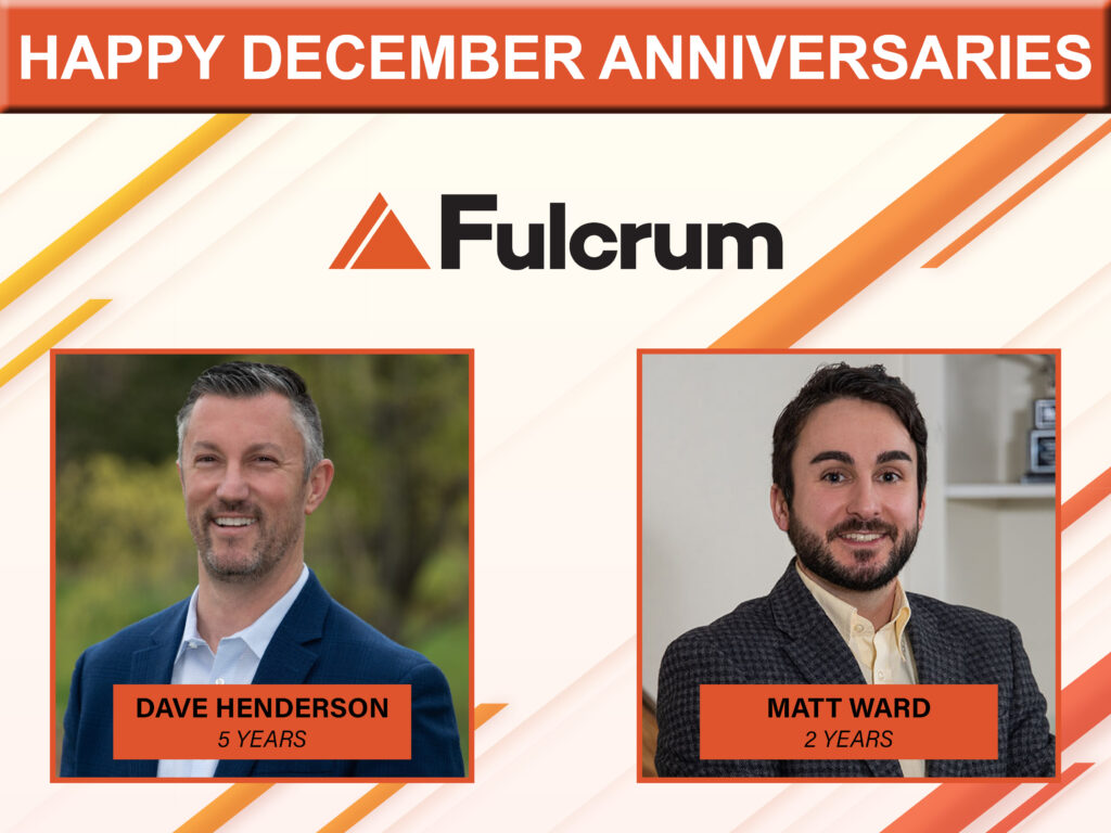 Posted by Fulcrum Associates on 12/03/2024Congratulations to Dave Henderson and Matt Ward for celebrating their work anniversaries this December! 🎉