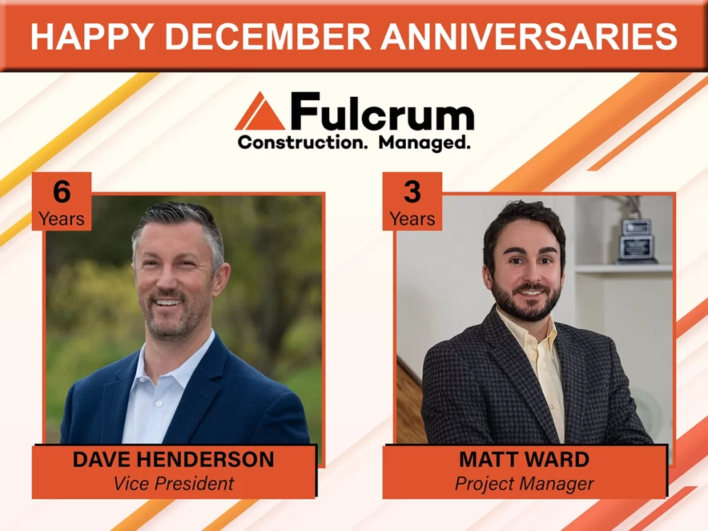 Posted by Fulcrum Associates on 12/02/2025Congratulations to Dave and Matt for celebrating their work anniversaries this month with Fulcrum. We’re grateful for your hard work, dedication, and the positive impact you both bring to our team every day!