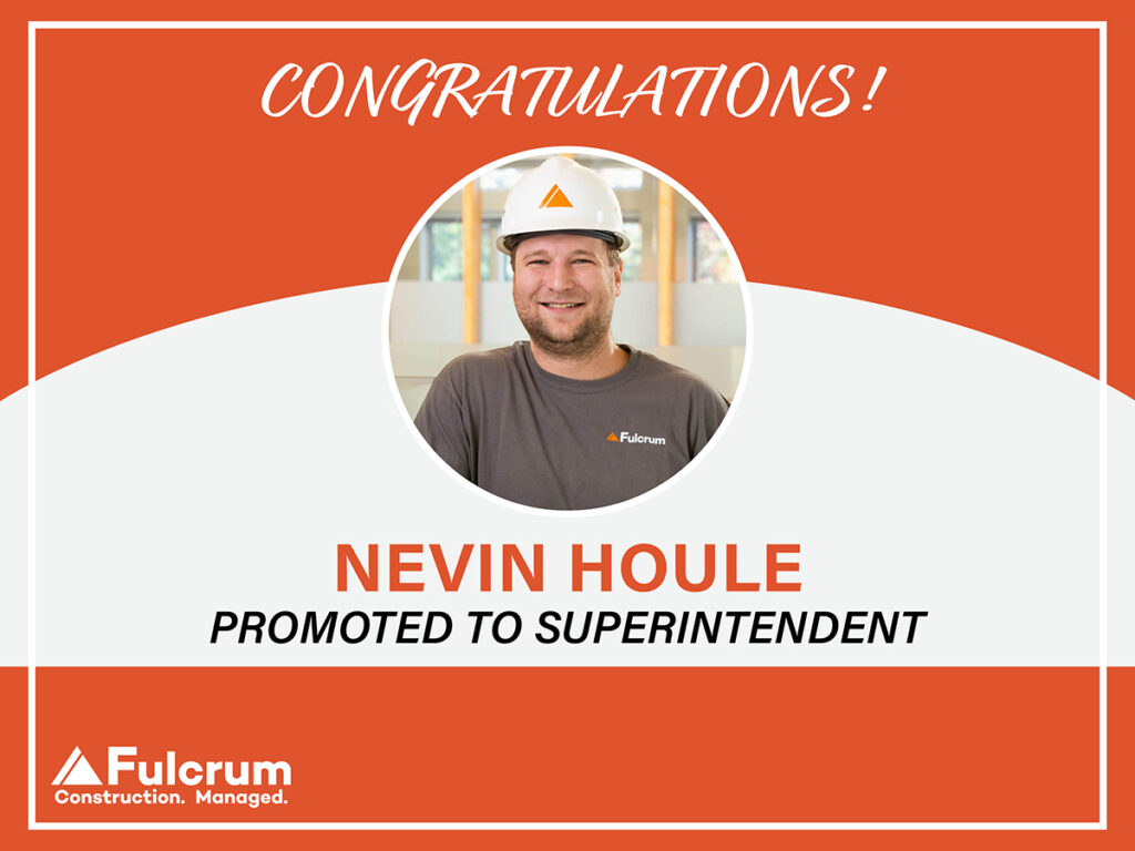 Posted by Fulcrum Associates on 08/19/2025Fulcrum is pleased to announce the promotion of Nevin Houle to Superintendent! Over the past nine years, Nevin has consistently demonstrated exceptional leadership, strong problem-solving skills, and a commitment to delivering quality results on every project. His dedication and hard work have not only met, but exceeded our core values, embodying them in action every day.