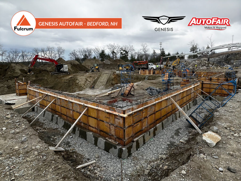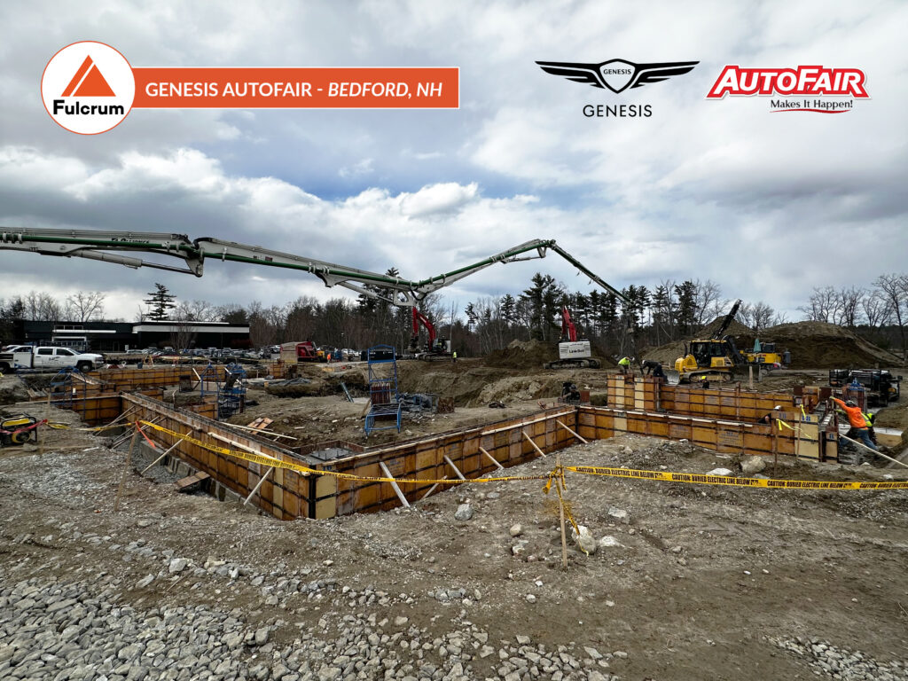 Posted by Fulcrum Associates on 03/27/2025Foundations and site work are well underway at the future Genesis Autofair dealership! This state-of-the-art facility is beginning to take shape, bringing a premier automotive experience to Bedford, NH. Stay tuned for more updates as we continue making progress.