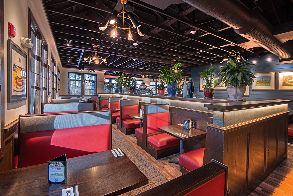 A major highlight of the project is the incorporation of thoughtfully designed indoor and outdoor dining spaces. The exterior features expanded patio seating and a custom outdoor fireplace, creating a comfortable and inviting atmosphere that extends the dining experience beyond the interior of the building. These elements not only enhance the guest experience but also provide flexibility for seasonal use and increased seating capacity.